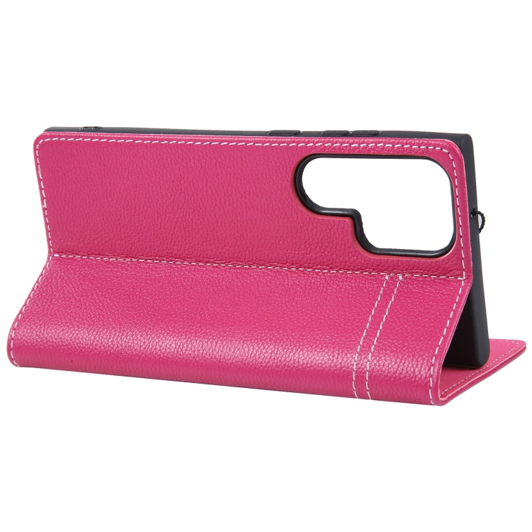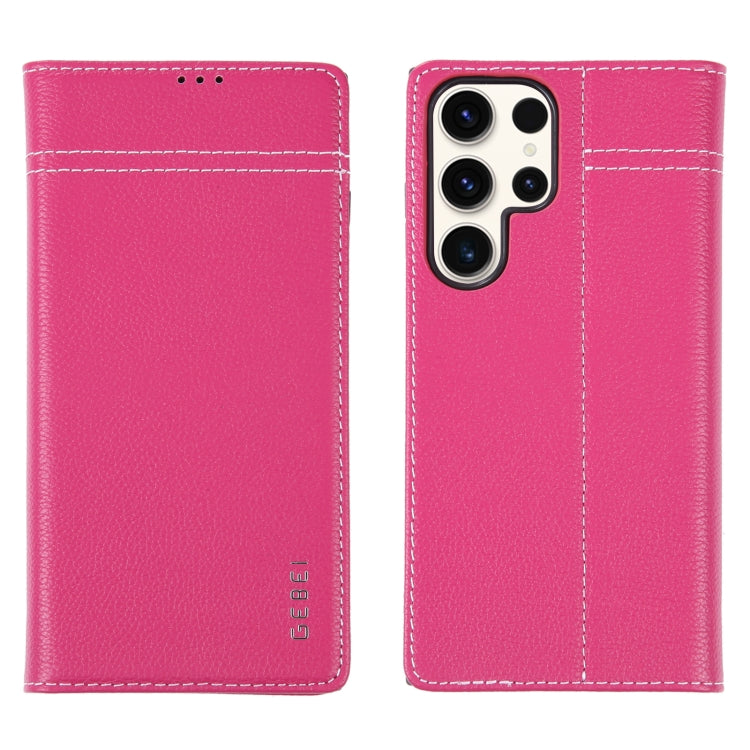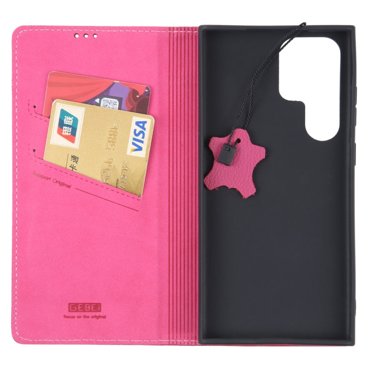 For Samsung Galaxy S23 Ultra 5G GEBEI Top-grain Horizontal Flip Leather Phone Case(Rose Red)
