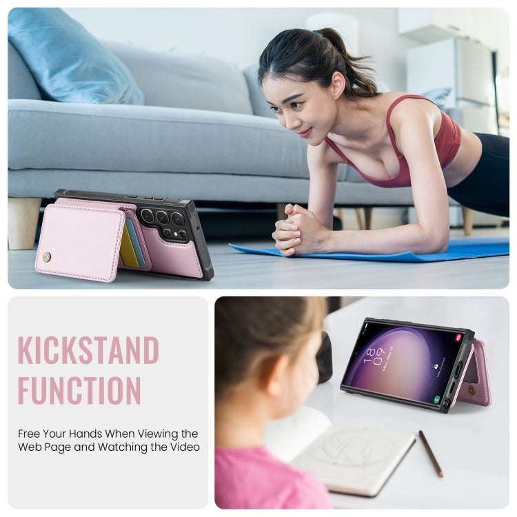 For Samsung Galaxy S23 Ultra 5G JEEHOOD J05 Business Magnetic Style RFID Leather Phone Case(Pink)
