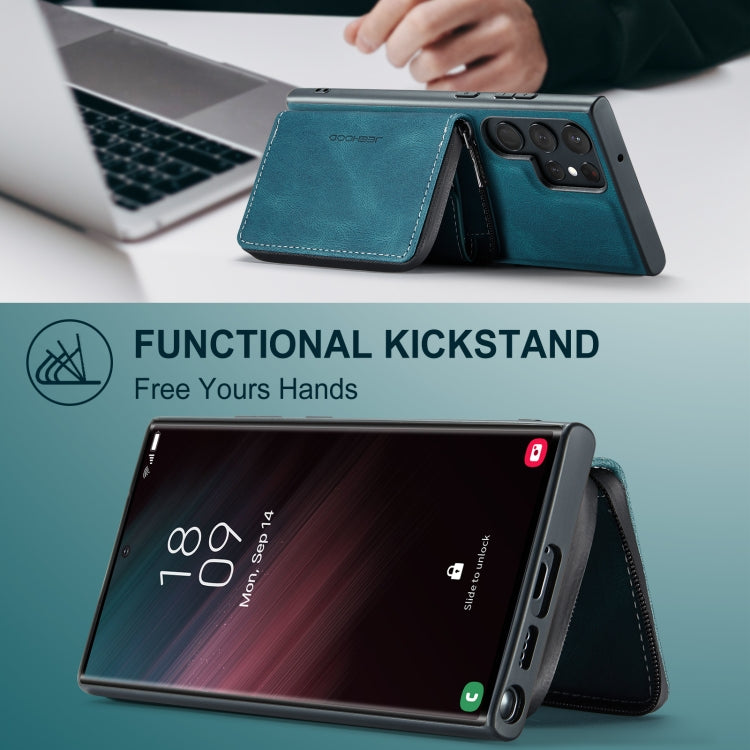For Samsung Galaxy S23 Ultra 5G JEEHOOD Magnetic Zipper Horizontal Flip Leather Phone Case(Blue)