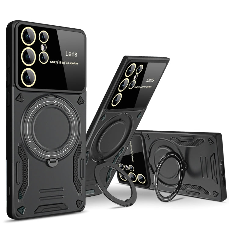 For Samsung Galaxy S23 Ultra 5G Large Window MagSafe Holder Phone Case(Blue)