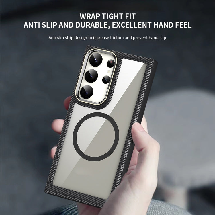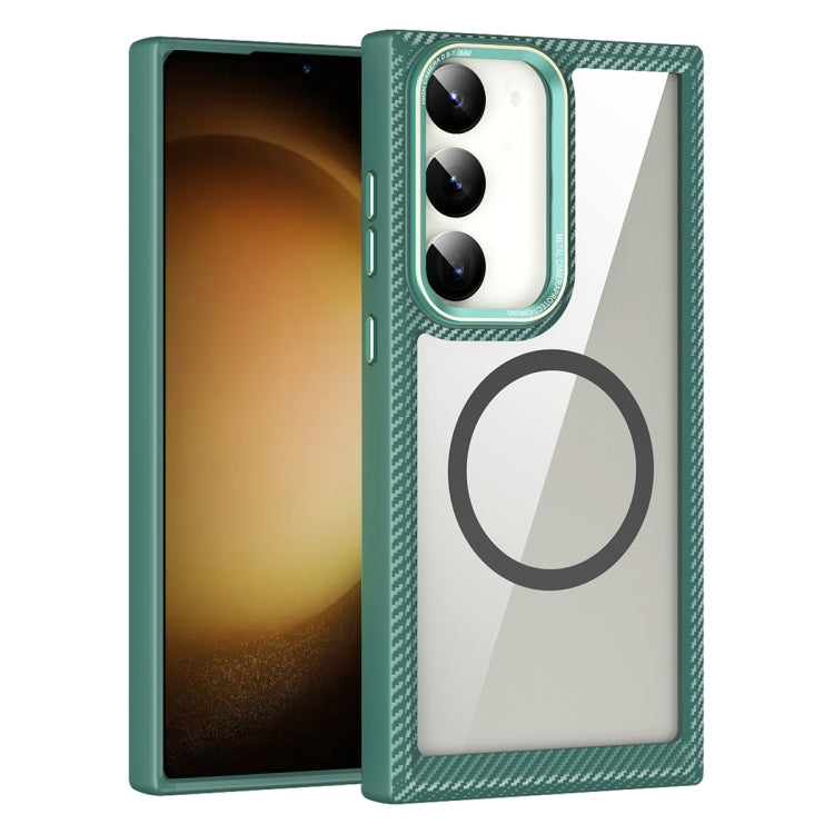 For Samsung Galaxy S23 Ultra 5G MagSafe Carbon Fiber Transparent Back Panel Phone Case(Green)