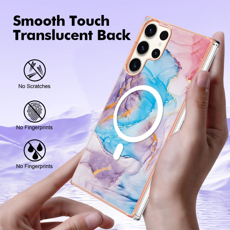 For Samsung Galaxy S23 Ultra 5G Marble Pattern Dual-side IMD Magsafe TPU Phone Case(Blue Marble)
