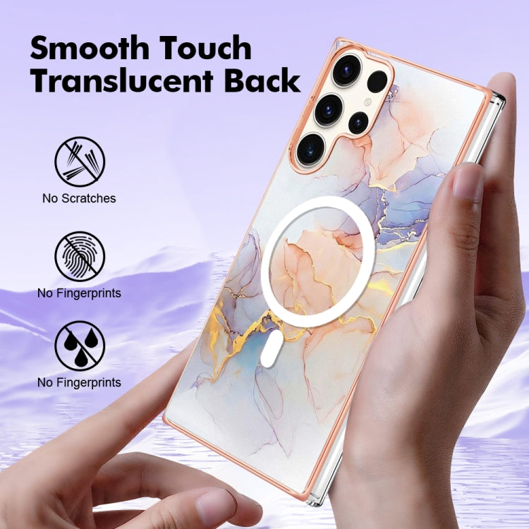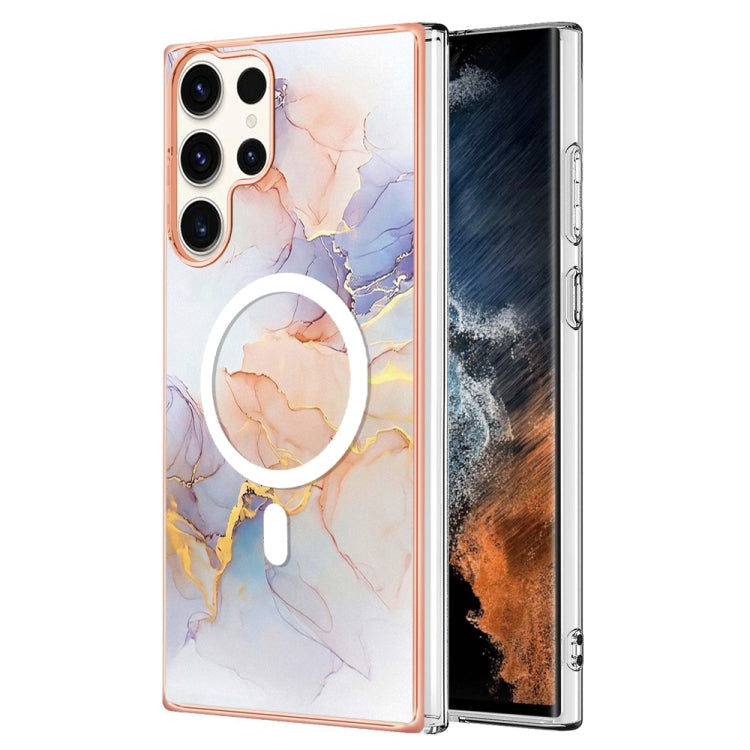 For Samsung Galaxy S23 Ultra 5G Marble Pattern Dual-side IMD Magsafe TPU Phone Case(White Marble)