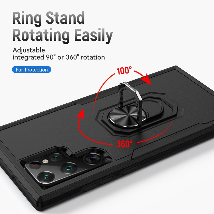 For Samsung Galaxy S23 Ultra 5G Pioneer Armor PC + TPU Holder Phone Case(Black)