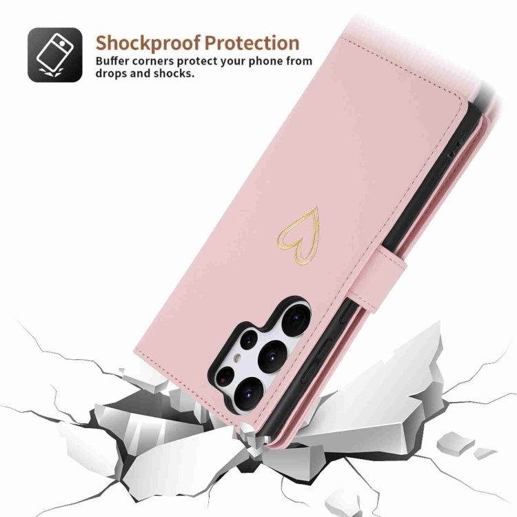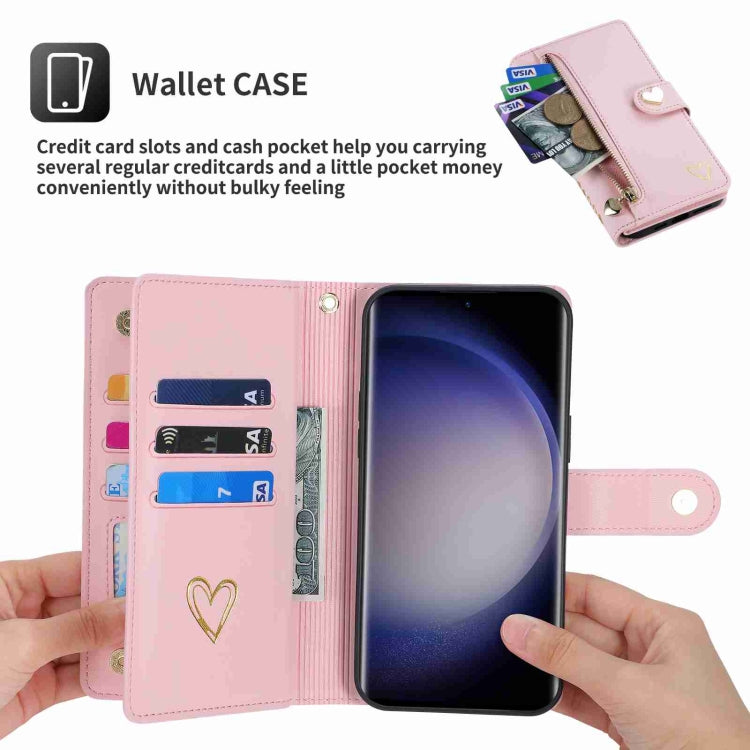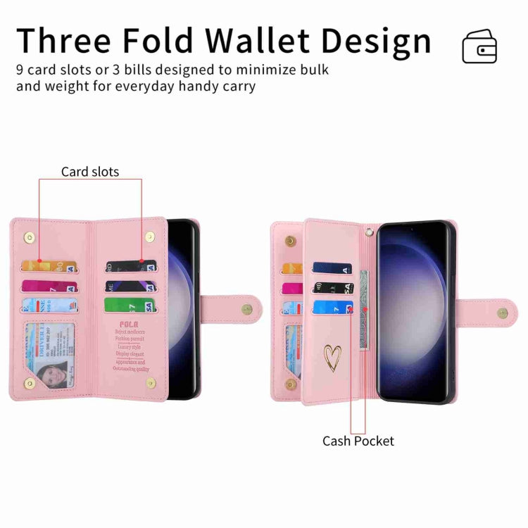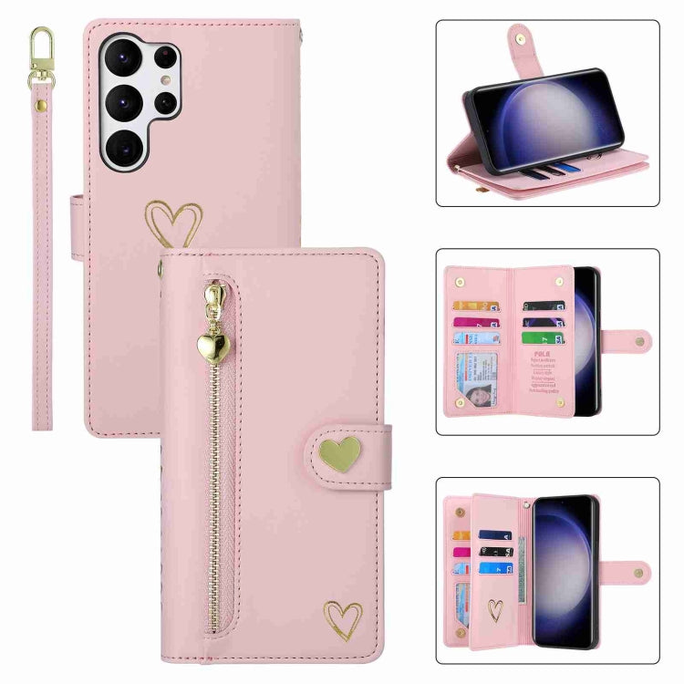 For Samsung Galaxy S23 Ultra 5G POLA Love Multi-Card Slots Zipper Wallet Leather Phone Case(Pink)