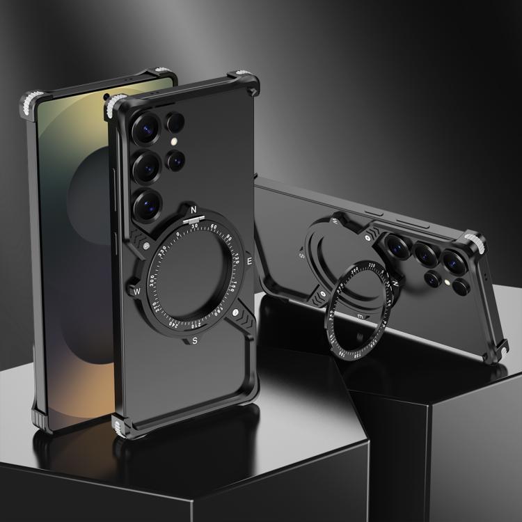 For Samsung Galaxy S23 Ultra 5G S Shaped 360 Holder Airbag Frameless MagSafe Metal Phone Case(Black)