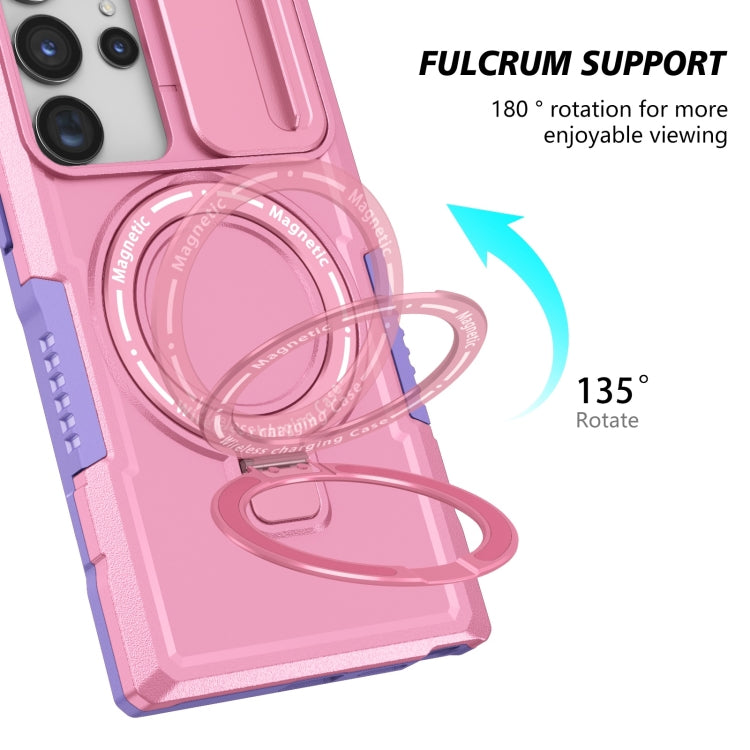 For Samsung Galaxy S23 Ultra 5G Sliding Camshield Magsafe Holder TPU Hybrid PC Phone Case(Purple Pink)