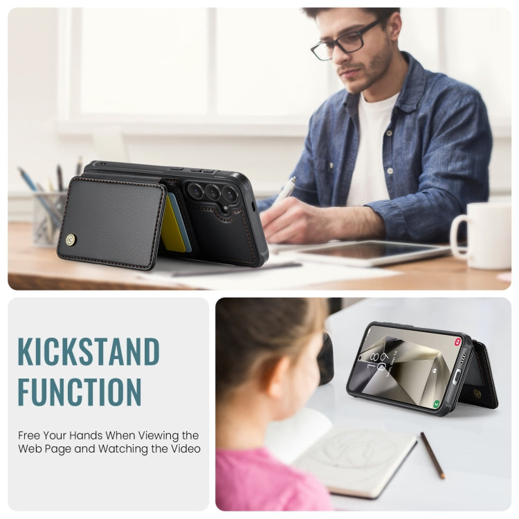 For Samsung Galaxy S24 5G JEEHOOD J05 Business Magnetic Style RFID Leather Phone Case(Black)