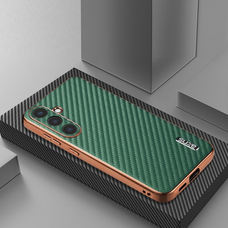 For Samsung Galaxy S25 5G AZNS Electroplated Edge Carbon Fiber Texture Phone Case(Green)