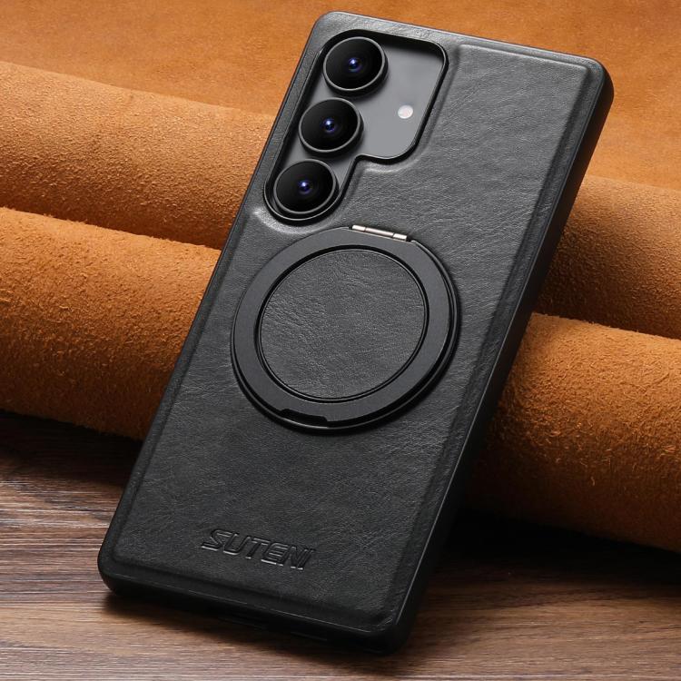 For Samsung Galaxy S25+ 5G Suteni G3 Oil Wax 360 Rotation Holder MagSafe Back Phone Case(Black)
