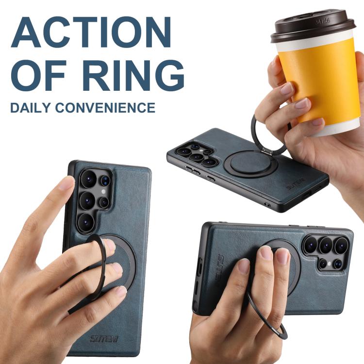 For Samsung Galaxy S25 5G Suteni G3 Oil Wax 360 Rotation Holder MagSafe Back Phone Case(Blue)