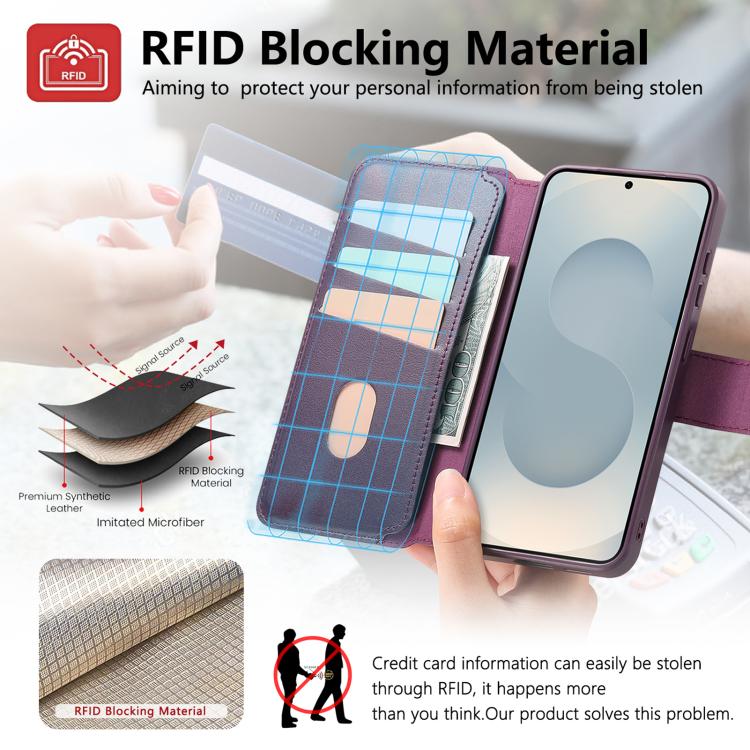 For Samsung Galaxy S25 Edge 5G CaseNeo Finger Grip Strap MagSafe Leather Phone Case(Purple)