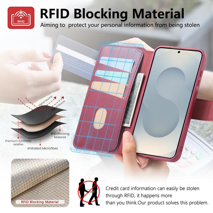 For Samsung Galaxy S25 Edge 5G CaseNeo Finger Grip Strap MagSafe Leather Phone Case(Red)