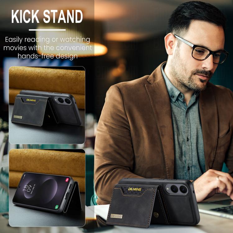 For Samsung Galaxy S25 Edge 5G DG.MING M2 Series 3-Fold Multi Card Bag + Magnetic Phone Case(Black)
