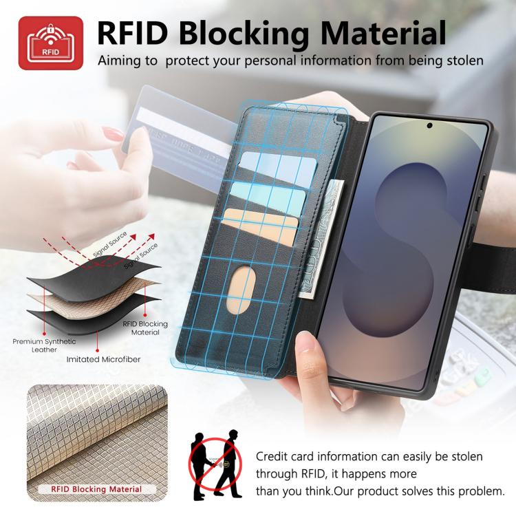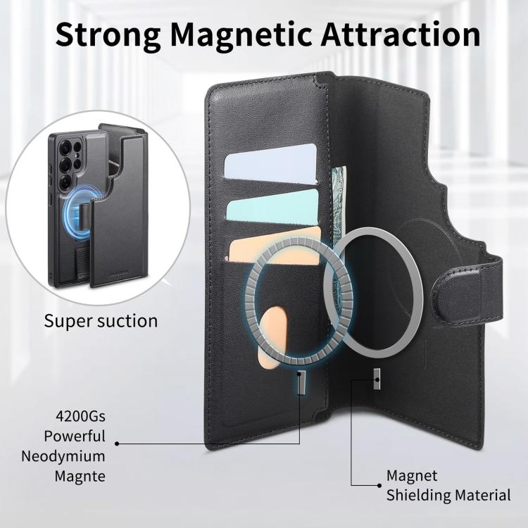 For Samsung Galaxy S25 Ultra 5G CaseNeo Finger Grip Strap MagSafe Leather Phone Case(Black)
