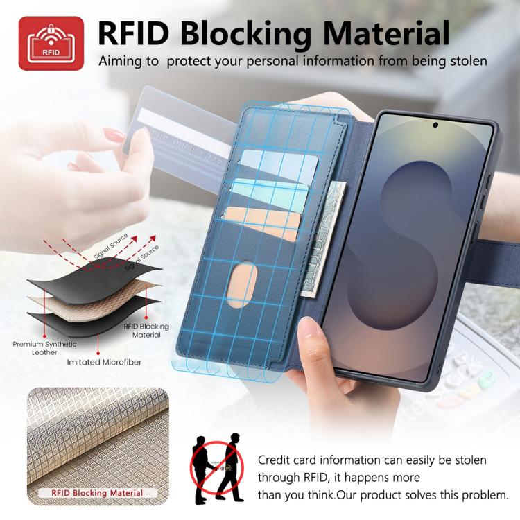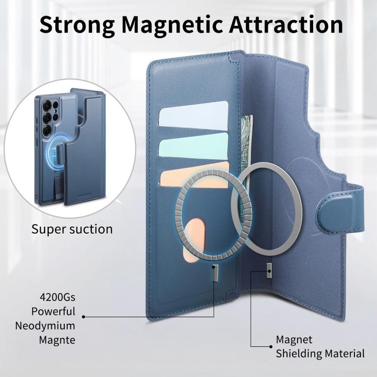 For Samsung Galaxy S25 Ultra 5G CaseNeo Finger Grip Strap MagSafe Leather Phone Case(Blue)