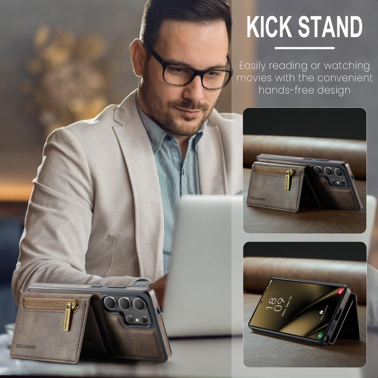 For Samsung Galaxy S25 Ultra 5G DG.MING M5 Series Zip RFID Multi Card Detachable Leather Phone Case(Coffee)