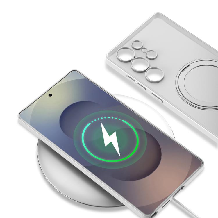 For Samsung Galaxy S25 Ultra 5G Frosted Skin-feel Magnetic Rotating Holder Phone Case, Not Included Pen(Gray)