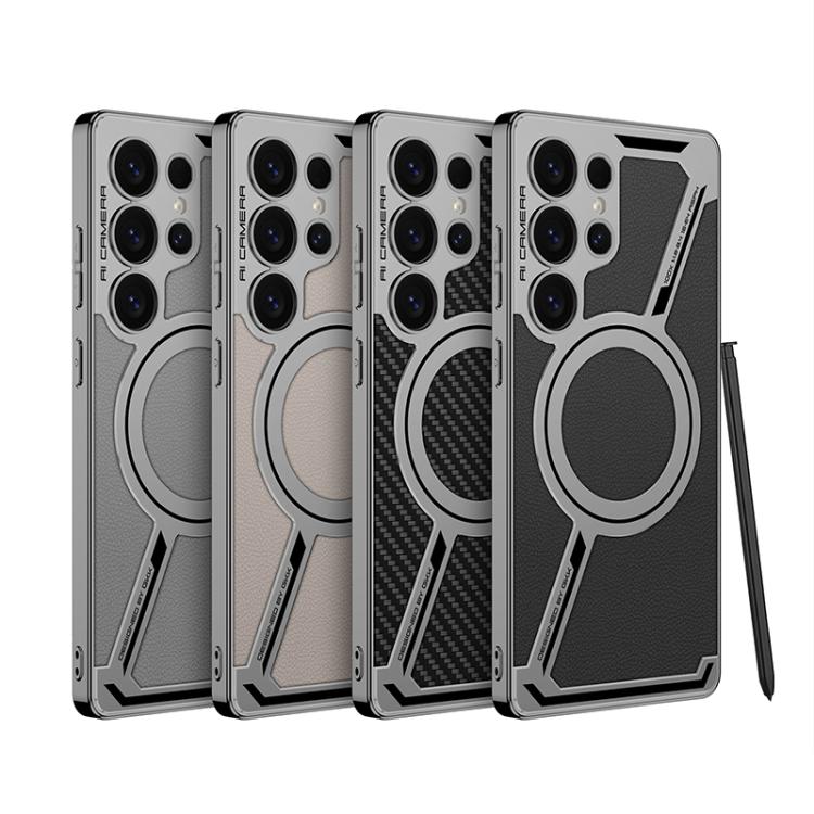 For Samsung Galaxy S25 Ultra 5G GKK Electroplating Leather Z-Shape MagSafe Phone Case, Not Included Pen(Black)
