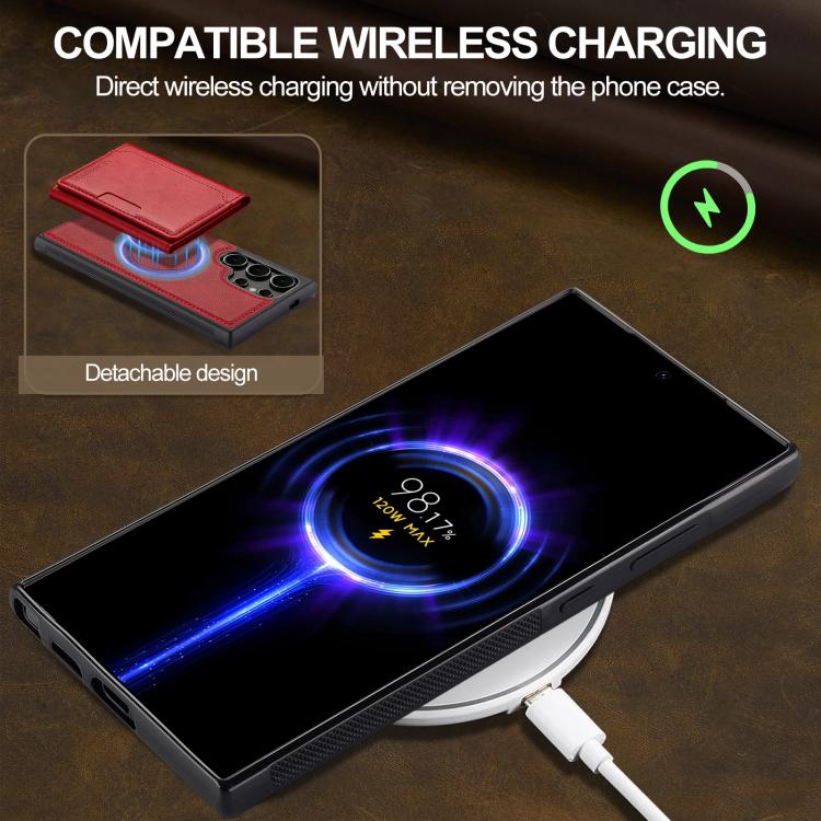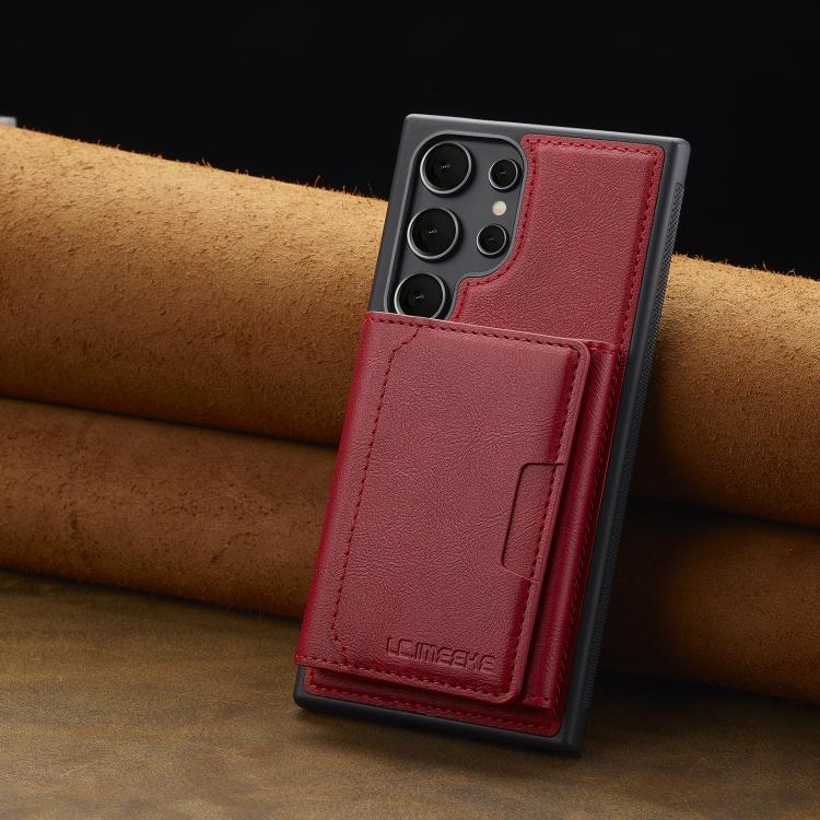 For Samsung Galaxy S25 Ultra 5G LC.IMEEKE L5 Series Detachable RFID Card Bag Magsafe Phone Case(Red)