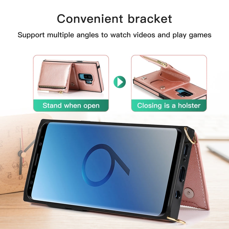 For Samsung Galaxy S9 Plus Square Zipper Wallet Bag TPU+PU Back Cover Case with Holder & Card Slots & Wallet & Cross-body Strap(Red)