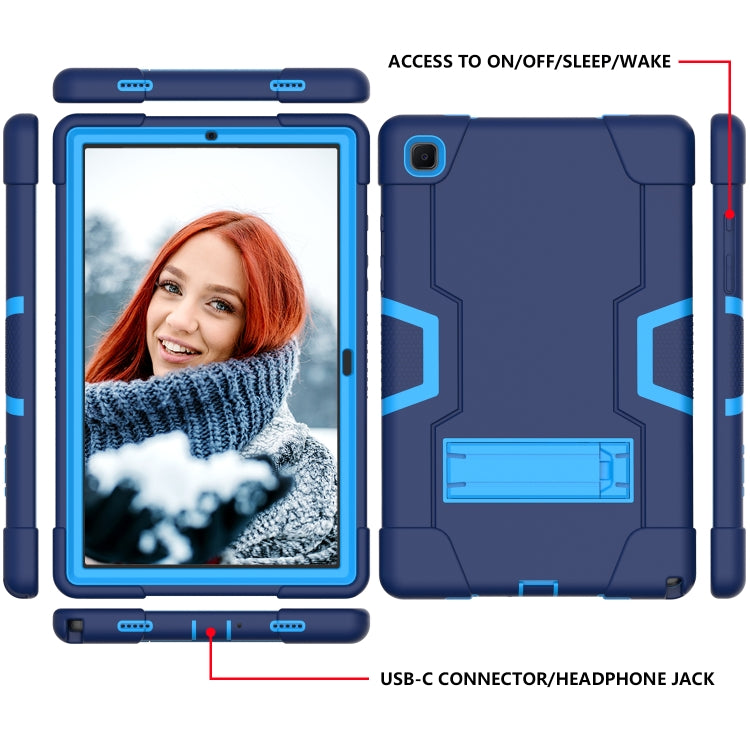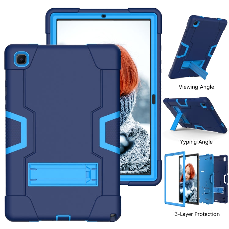For Samsung Galaxy Tab A7 10.4 (2020) T500 Contrast Color Robot Shockproof Silicon + PC Protective Case with Holder(Navy Blue + Blue)