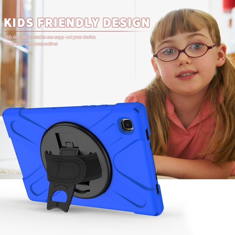 For Samsung Galaxy Tab A7 (2020) T500/T505 360 Degree Rotation PC + Silicone Protective Case with Holder & Hand-strap(Blue)
