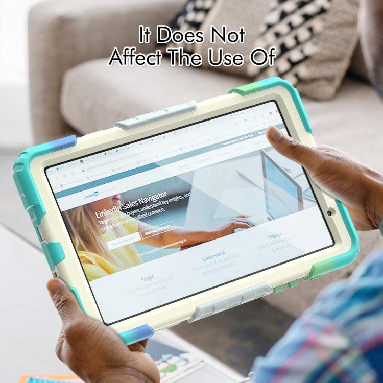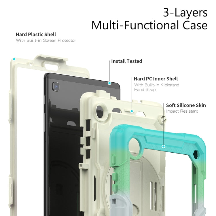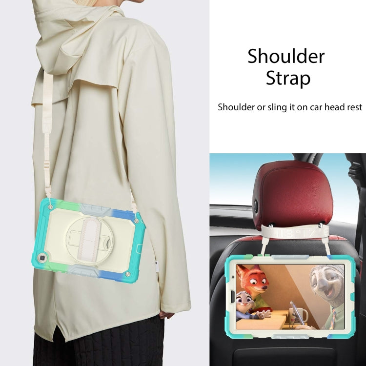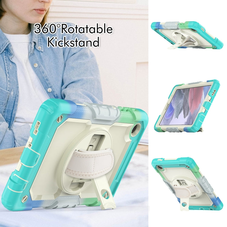 For Samsung Galaxy Tab A7 Lite T220 Silicone Hybrid PC Tablet Case with Shoulder Strap(Camouflage Light Blue)