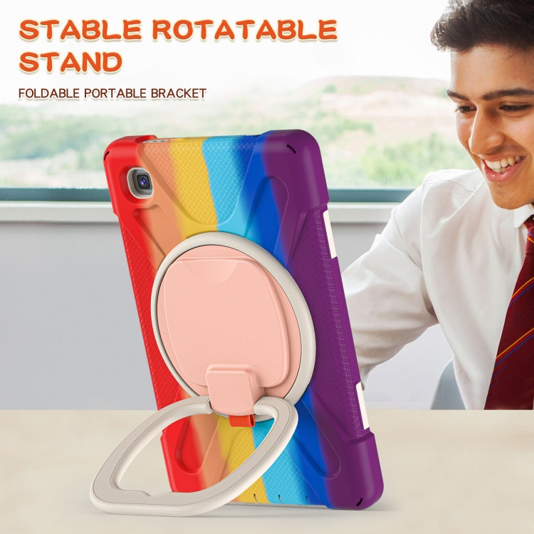 For Samsung Galaxy Tab A7 Lite T220 / T225 Silicone + PC Protective Case with Holder & Shoulder Strap(Colorful Red)
