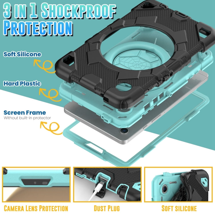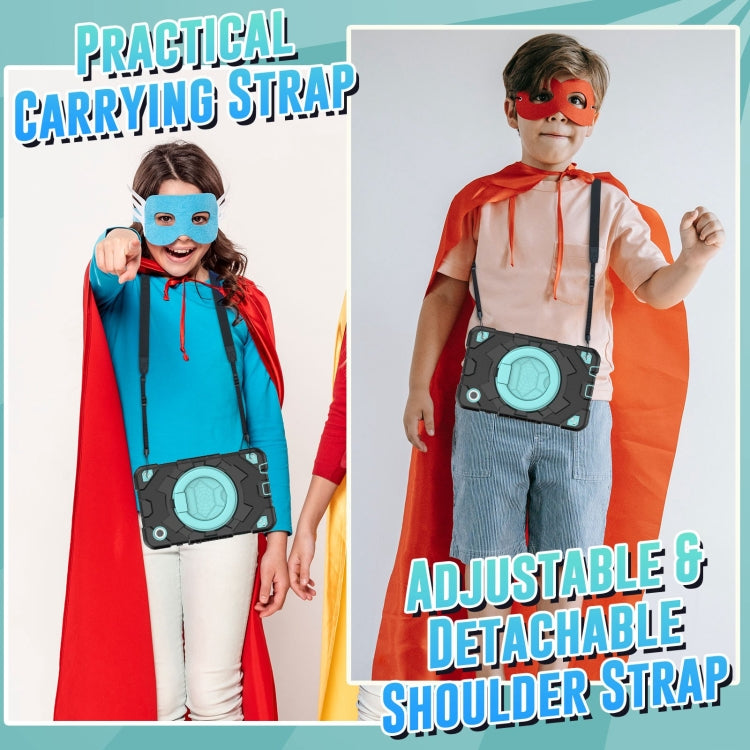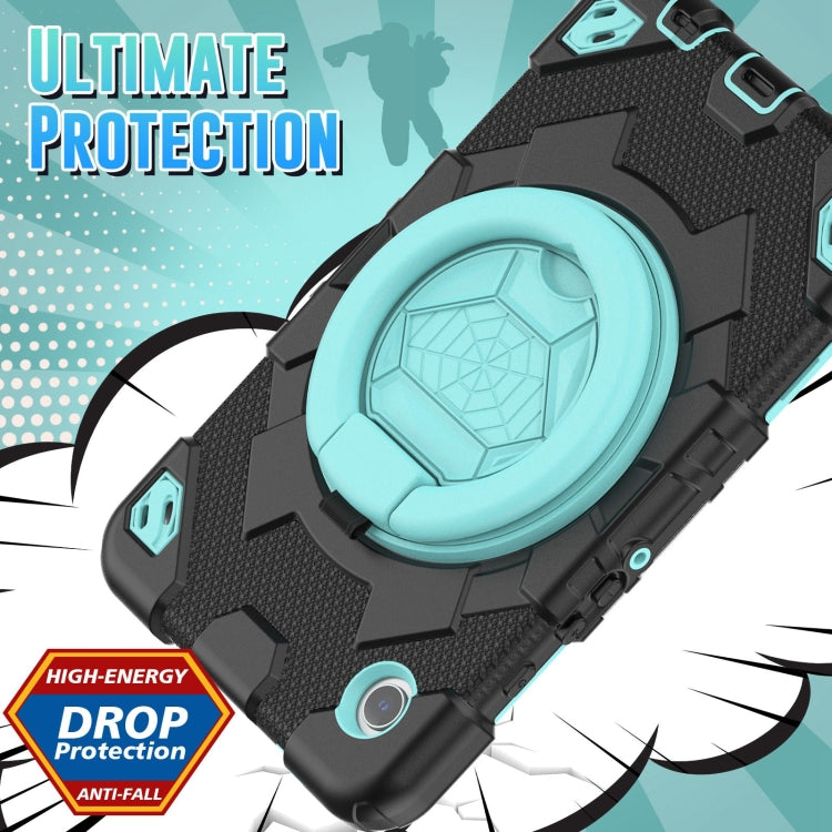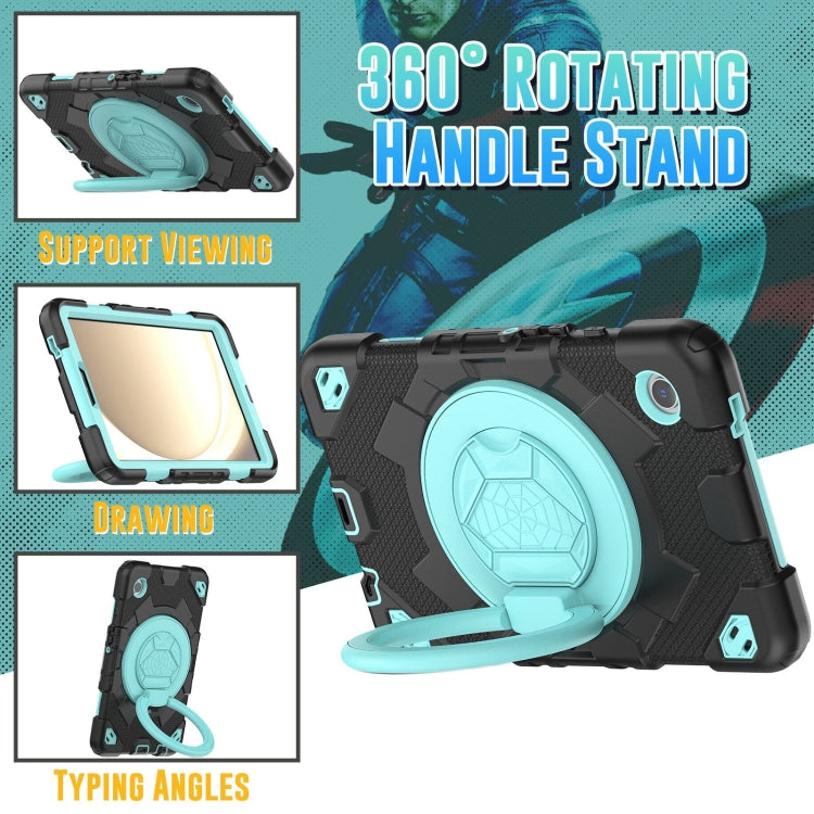 For Samsung Galaxy Tab A9 Spider Rotation Handle Silicone Hybrid PC Tablet Case(Black Light Blue)