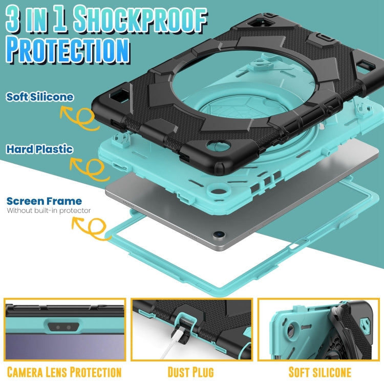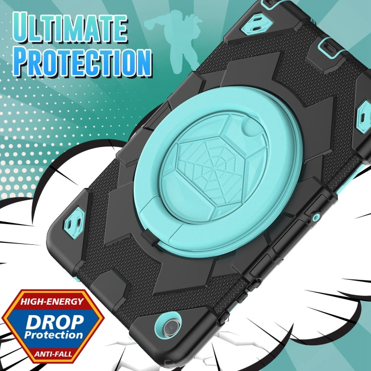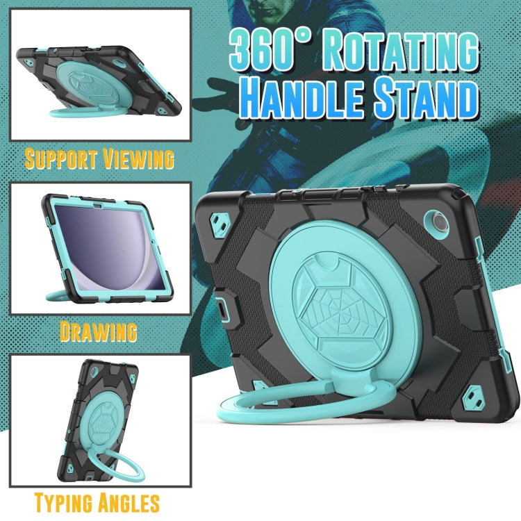 For Samsung Galaxy Tab A9+ Spider Rotation Handle Silicone Hybrid PC Tablet Case(Black Light Blue)