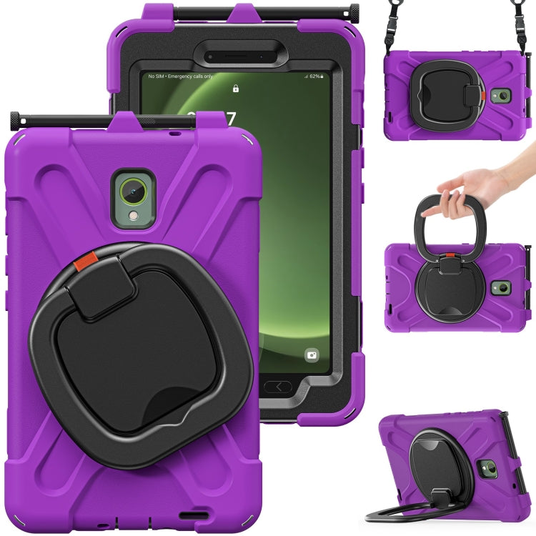 For Samsung Galaxy Tab Active5 X300 Silicone Hybrid PC Tablet Case with Holder & Shoulder Strap(Purple)