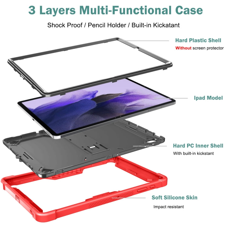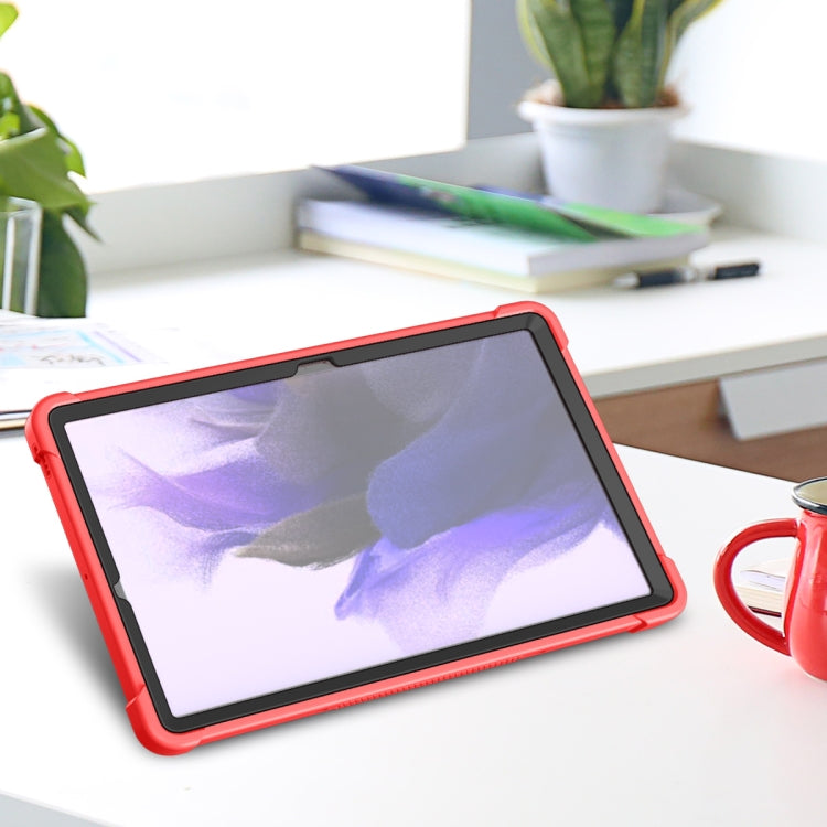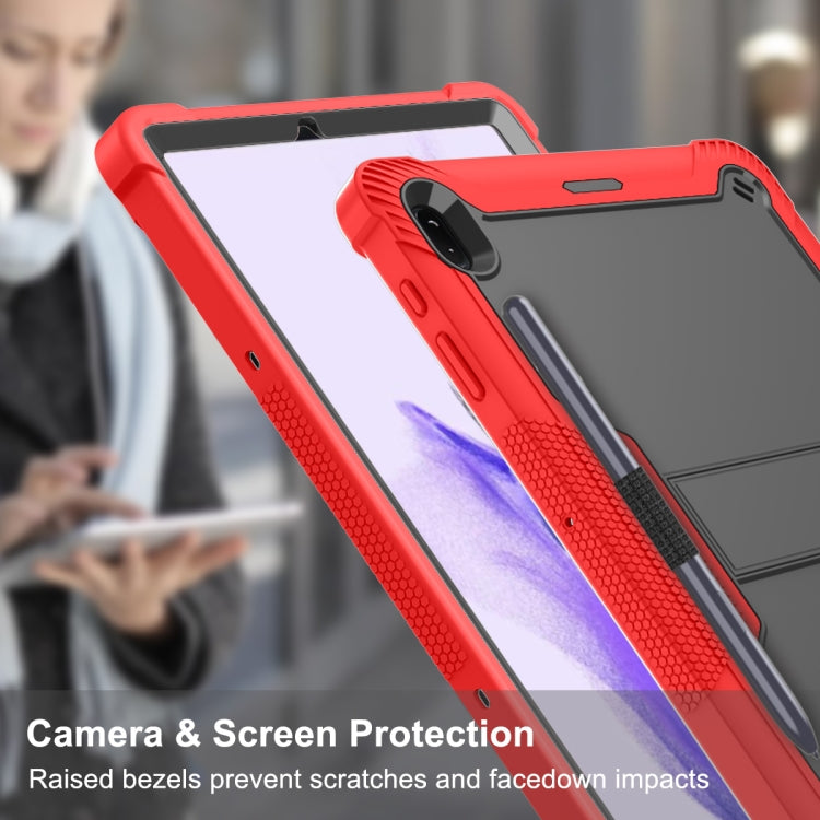 For Samsung Galaxy Tab S7 FE Silicone + PC Shockproof Protective Case with Holder(Red + Black)