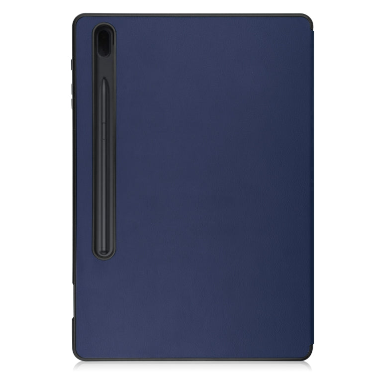 For Samsung Galaxy Tab S7 Lite T730 / T735 / Tab S7 FE T736 Custer Pattern Pure Color TPU Smart Tablet Holster with Sleep Function & 3-Fold Holder & Pen Slot(Blue)