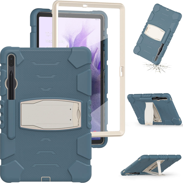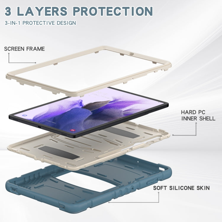 For Samsung Galaxy Tab S7+/ Tab S7 FE / Tab S8+ 3-Layer Protection Screen Frame + PC + Silicone Combination Case with Holder(Cornflower Blue)