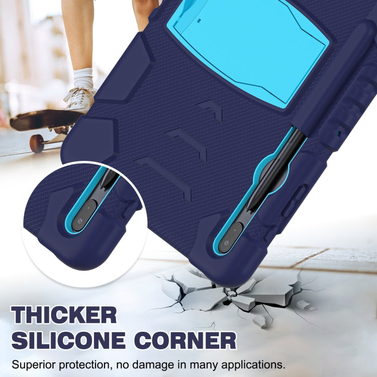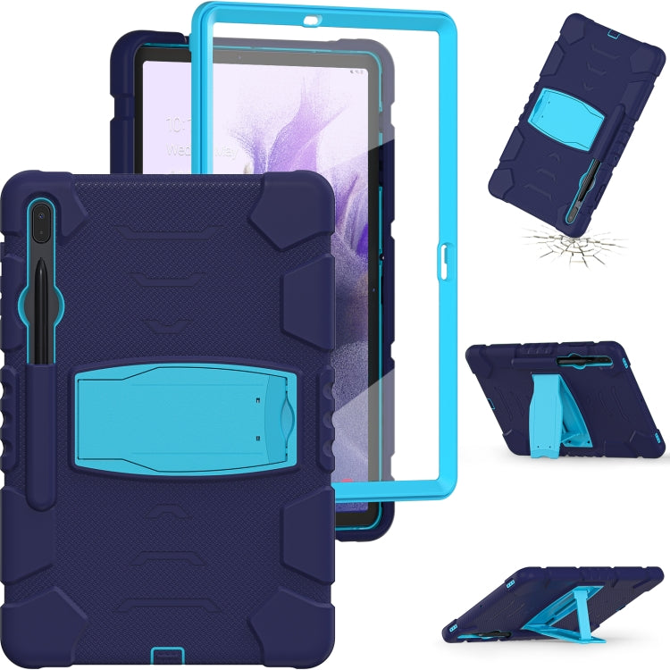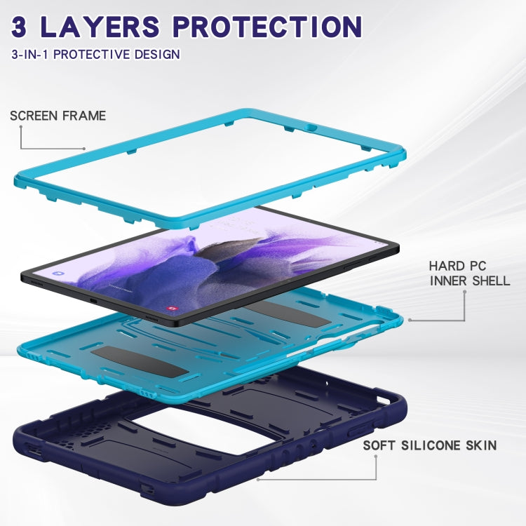 For Samsung Galaxy Tab S7+/ Tab S7 FE / Tab S8+ 3-Layer Protection Screen Frame + PC + Silicone Combination Case with Holder(NavyBlue+Blue)