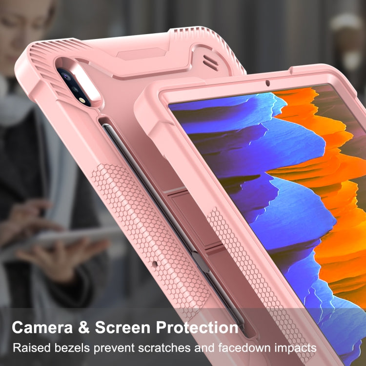 For Samsung Galaxy Tab S8 / Galaxy Tab S7 Silicone + PC Shockproof Protective Case with Holder(Rose Gold)