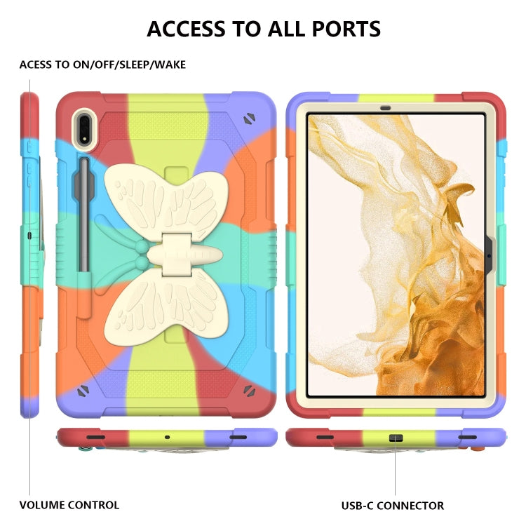 For Samsung Galaxy Tab S8+ / S7+ Butterfly Kickstand Heavy Duty Hard Rugged Tablet Case(Colorful Red)