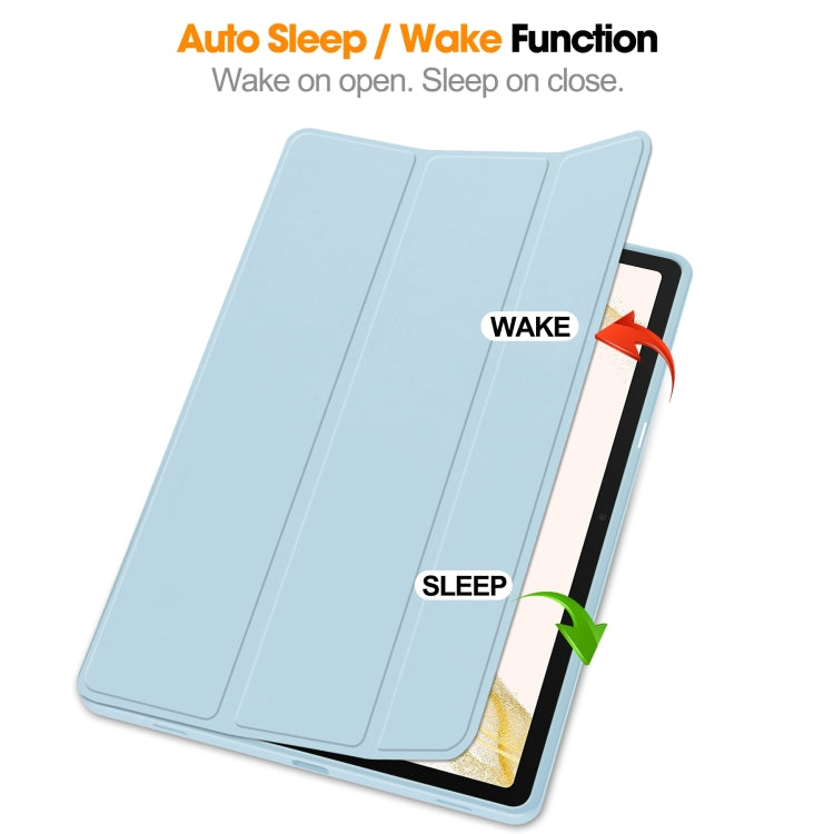 For Samsung Galaxy Tab S9+ 3-Fold Pure Color TPU Smart Leather Tablet Case with Pen Slot(Light Blue)
