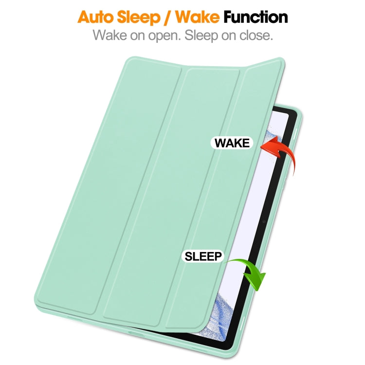 For Samsung Galaxy Tab S9 3-Fold Pure Color TPU Smart Leather Tablet Case with Pen Slot(Mint Green)