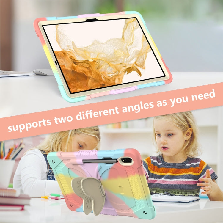 For Samsung Galaxy Tab S9 Butterfly Kickstand Heavy Duty Hard Rugged Tablet Case(Colorful Rose Gold)