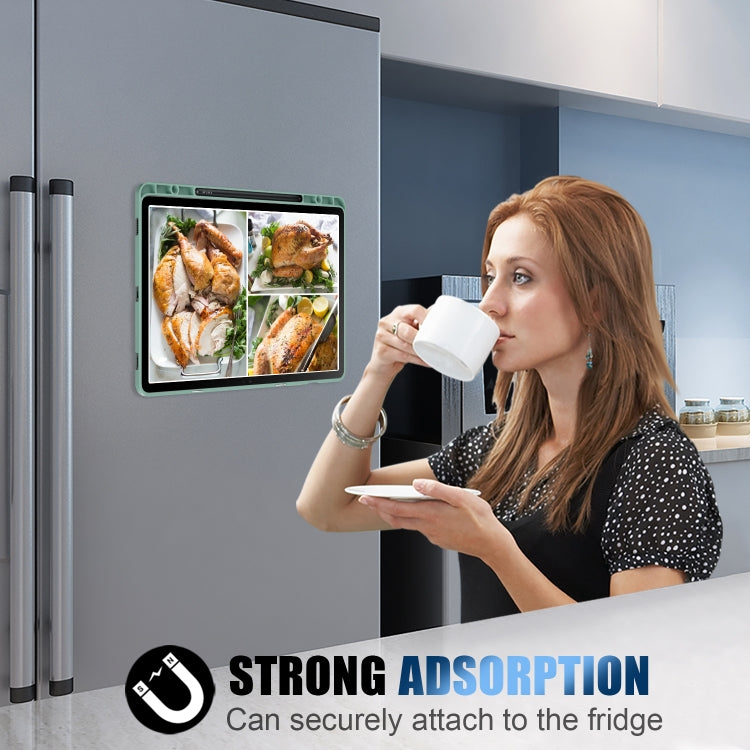 For Samsung Galaxy Tab S9+ Cloth Texture Multi-folding Horizontal Flip Leather Tablet Case(Dark Green)