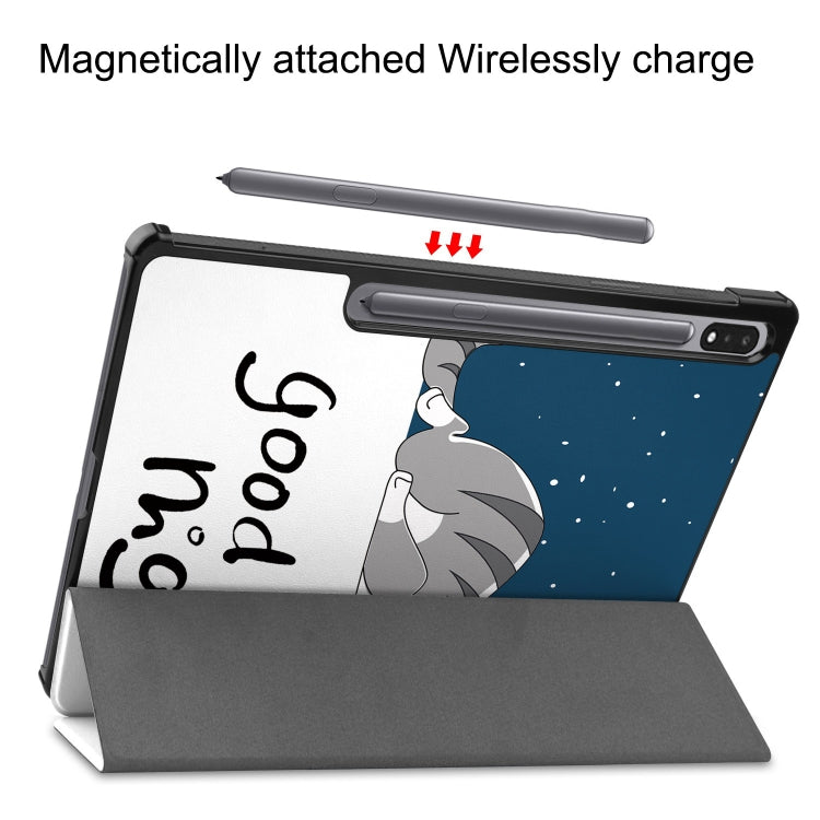 For Samsung Galaxy Tab S9 Custer Painted 3-Fold Holder Smart Leather Tablet Case(Lazy Cat)