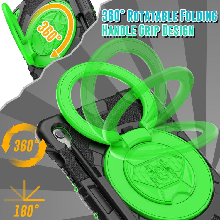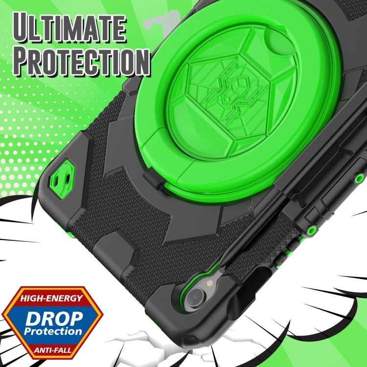 For Samsung Galaxy Tab S9 Spider Rotation Handle Silicone Hybrid PC Tablet Case(Black Green)