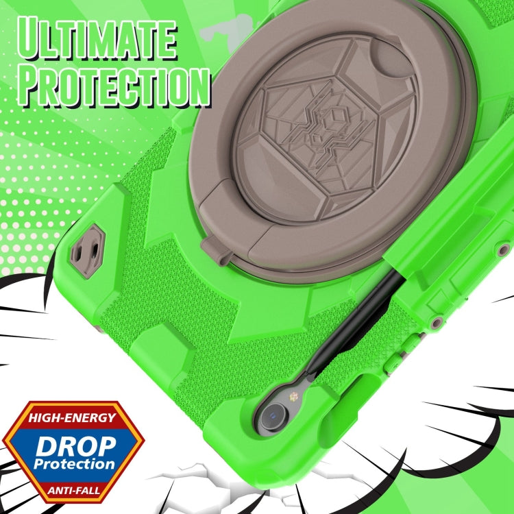 For Samsung Galaxy Tab S9 Spider Rotation Handle Silicone Hybrid PC Tablet Case(Grey Green)