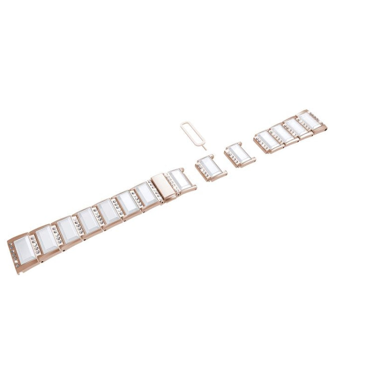 For Samsung Galaxy Watch 3 45mm Stainless Steel Diamond Encrusted Watch Band(Gold+White)