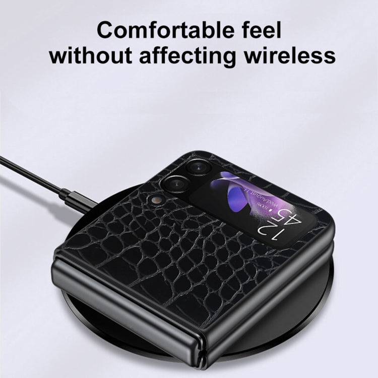 For Samsung Galaxy Z Flip4 Leather Shockproof Protective Phone Case(Black Crocodile Texture)
