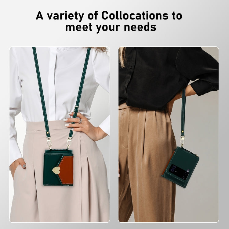 For Samsung Galaxy Z Flip4 POLA Color Block Love Buckle Multi-Card Slots Wallet Phone Case(Green)