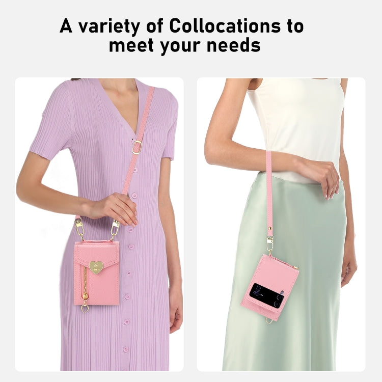 For Samsung Galaxy Z Flip4 POLA Litchi Texture Love Buckle Multi-Card Slots Zipper Wallet Phone Case(Pink)