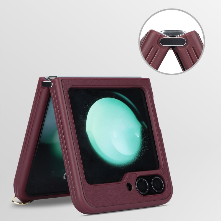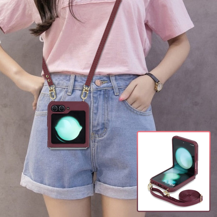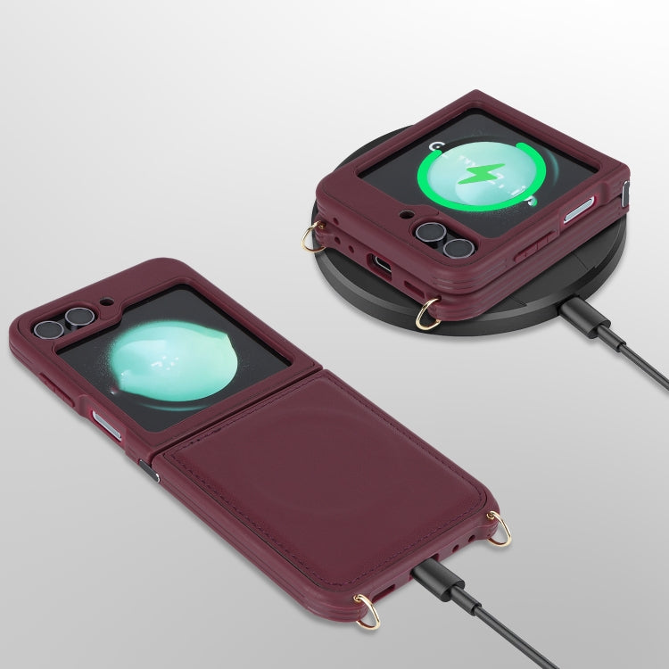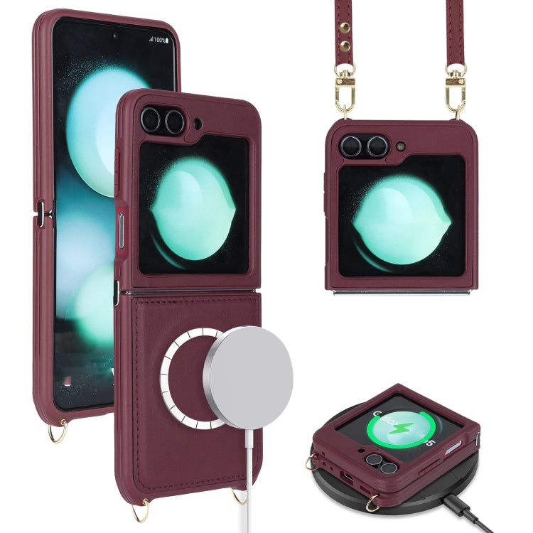 For Samsung Galaxy Z Flip5 5G Crossbody R20 Texture Leather Magsafe Phone Case(Brown)